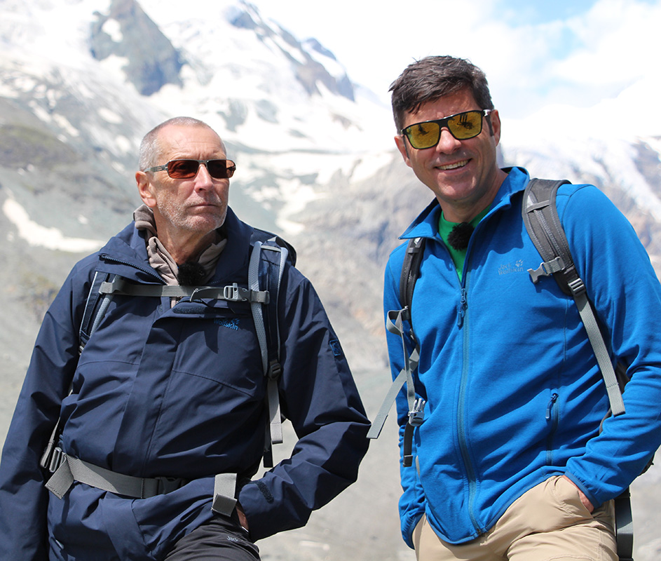 Professor Liessmann und Andreas Jäger wandern den ersten Teil des „Alpe-Adria-Trails“ – ein Weitwanderweg, der auf der Kaiser Franz Josefs Höhe mit Blick auf den Großglockner beginnt, und fünfunddreißig Tagesetappen später nahe Triest am Meer endet.