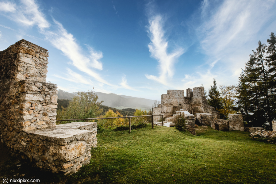 Die Burgruine Hohenwang, auch Hochschloss genannt, zählte einst zu den bedeutendsten mittelalterlichen Wehrbauten in der Obersteiermark. Heute erinnert nur mehr eine Ruine an die längst vergangenen Zeiten. Die Burgruine thront auf einem steilen, nach Südwesten fast senkrecht abfallenden Felsberg, etwa 100 Meter oberhalb des Ortes Langenwang. Diese Lage bot damals einen natürlichen Schutz vor Angriffen. Drei verschiedene Aufstiegsmöglichkeiten führen direkt zur Burgruine, die ganzjährig bei freiem Eintritt zugänglich ist und ein beliebtes Ausflugsziel für die ganze Familie ist.